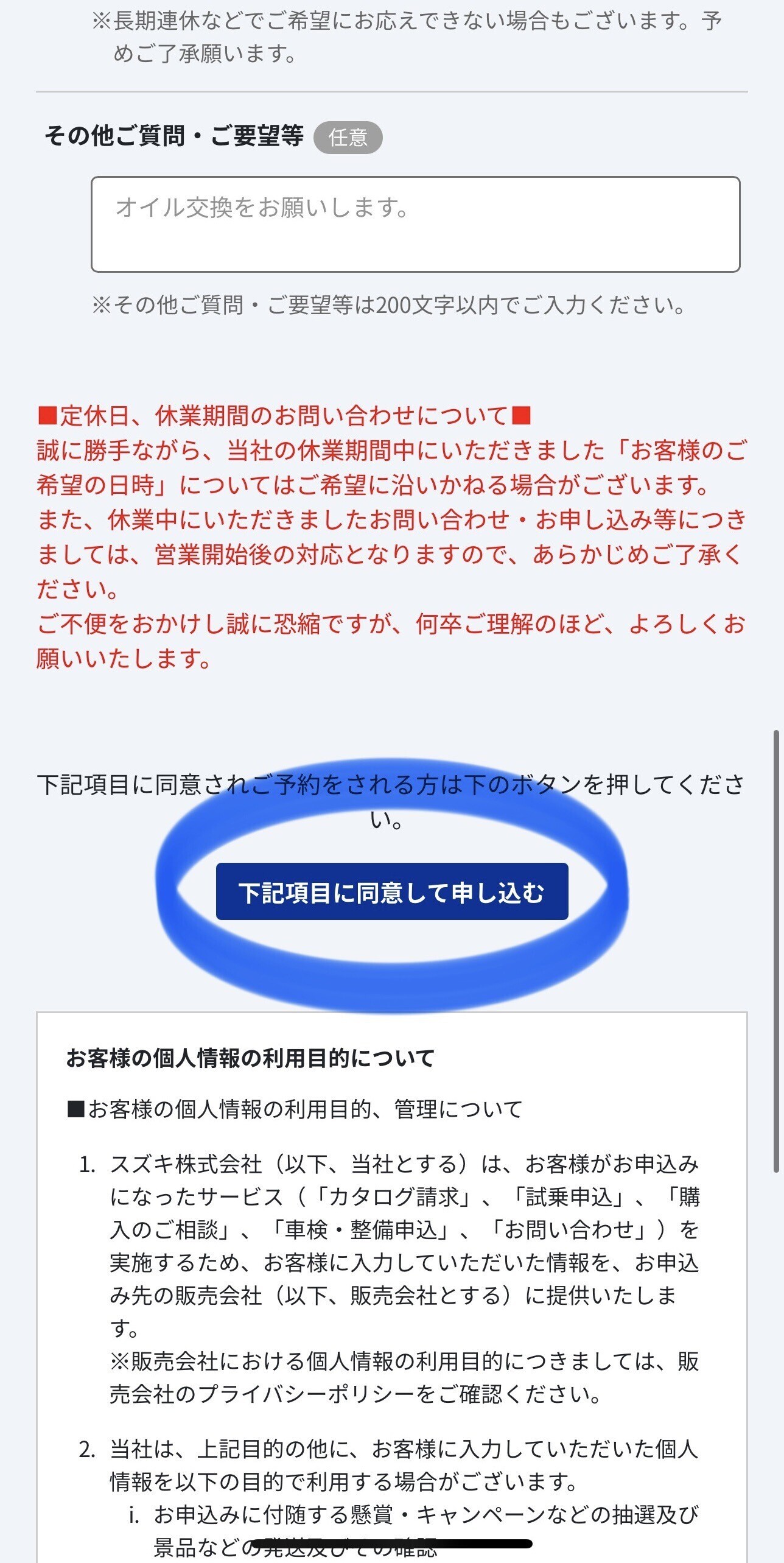下にスクロールし、申し込むを選択