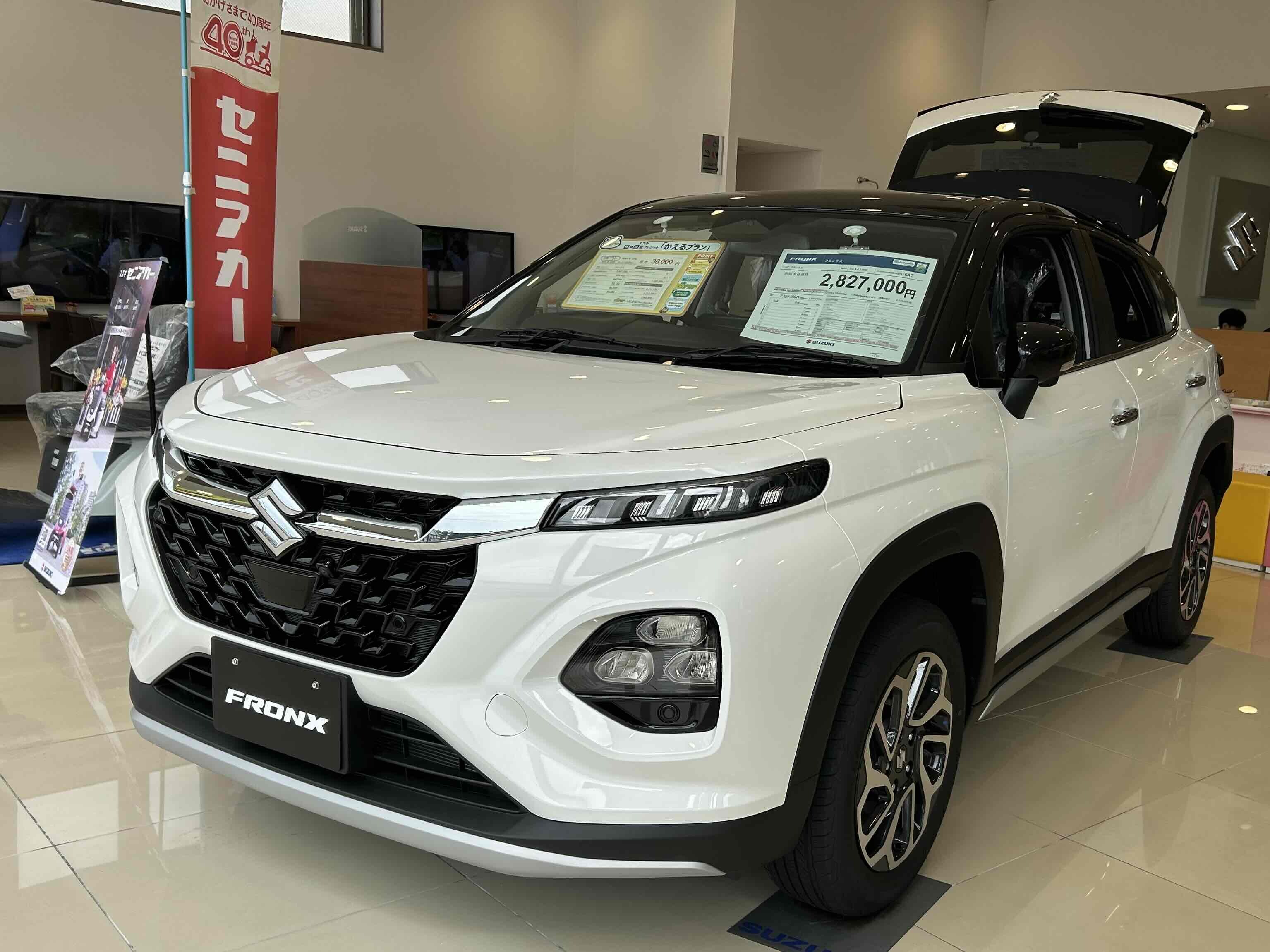 限定車 2025.10.20 フロンクス展示車入庫しました! いつも当店のブログをご覧いただきありがとうございます フロンクスが入庫しました! 即納可能でございます。 ・4WD/6AT ・アークティックホワイトパールブラック2トーンルーフ ・全方位カメラ付きメモリーナビ ・スズキコネクト 車両本体価格:2,827,000円 こちらの展示車限定でお得な特典がございます 気になる方はぜひ当店まで!! ご来店お待ちしております