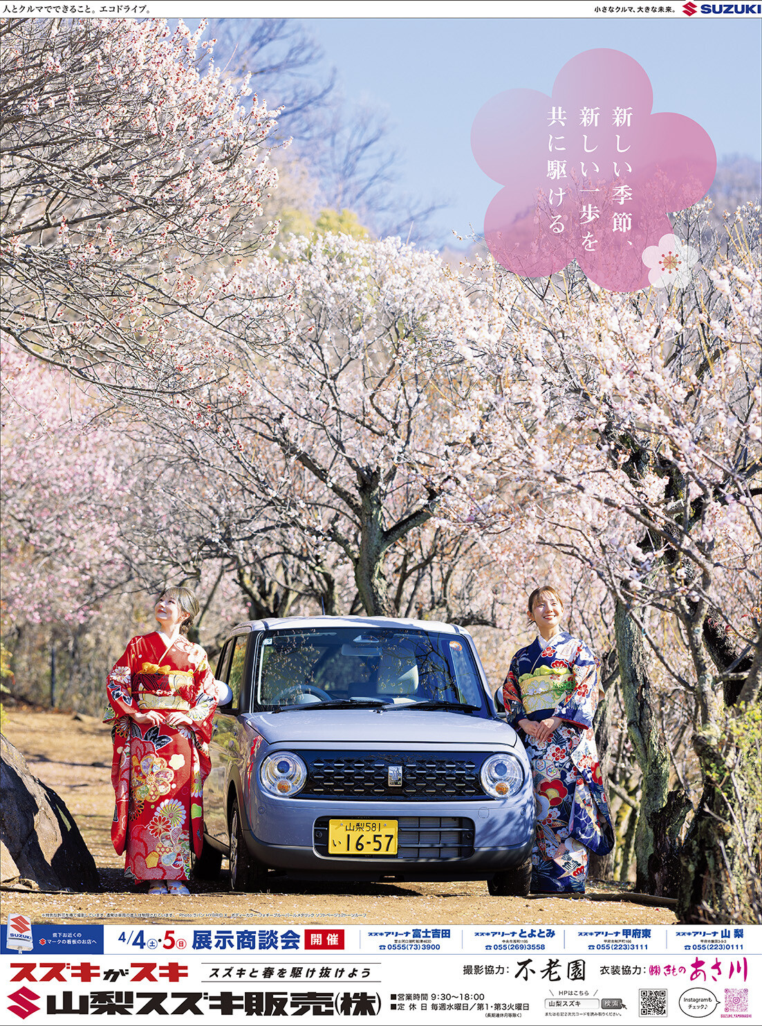 イベント/キャンペーン 2026.04.04 2026年4月4日(土)折込チラシ掲載(新車 展示会のお知らせ) 4月4日(土)・5日(日) \ 新車展示会開催!! / 新しい季節、スズキの車とスタートしましょう 皆様のご来店を 心よりお待ちしております♪ スズキがスキ スズキと春を駆け抜けよう