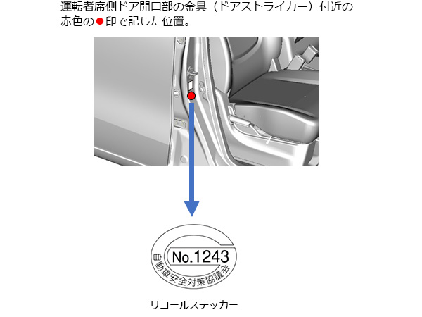 令和2年(2020年)10月31日までにリコール対策が実施された車両は、リコールステッカーの貼付でご確認いただけます。リコールステッカー貼付位置の代表例をご紹介します。