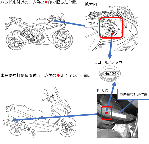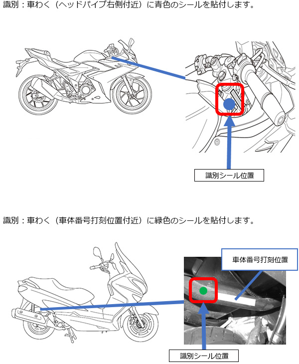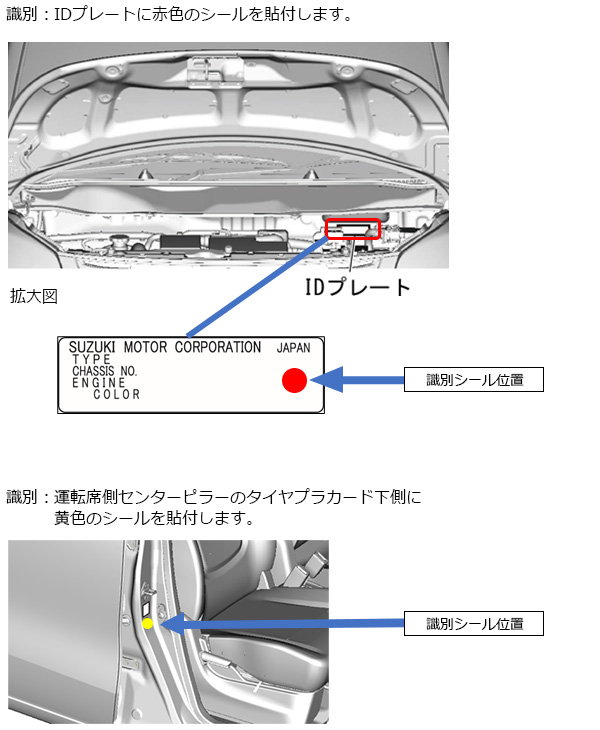 昭和56年(1981年)10月から令和8年(2026年)3月31日までに届出し、実施された案件はリコール実施後の車両に「識別表示シール」が施されています。