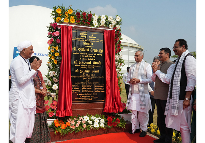 1月18日に執り行われた開所式には、グジャラート州のアチャリヤ・デッヴラット知事をはじめ、Banas Dairyのシャンカール・チョードリー会長兼グジャラート州議会議長、スズキのバイオガス事業本部長 豊福健一朗常務役員が出席しました。