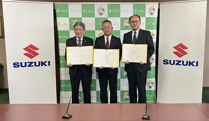 スズキ株式会社は、株式会社スズキ自販山口と共同で山口県下松市と災害時における車両貸与等に関する応援協定を締結しました。この協定は、台風、地震等の大規模災害発生時または発生する恐れがある場合に、下松市からの応援要請に基づき、スズキ自販山口から下松市に軽商用車および電気自動車を無償で貸与する等の応援を実施するものです。