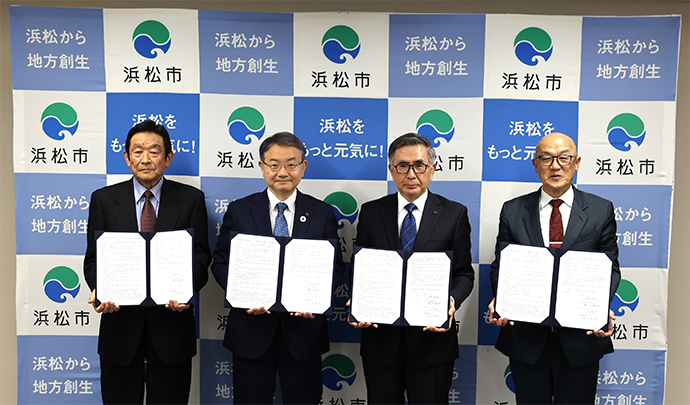 スズキ株式会社(以下、「スズキ」)は、浜松市、天竜林材業振興協議会、株式会社ソミック石川(以下、「ソミック石川」)と、浜松市域における森林由来J-クレジットの地産地消サイクル構築に向けた基本合意(MOU)を4月15日に締結しました。
