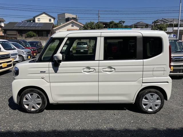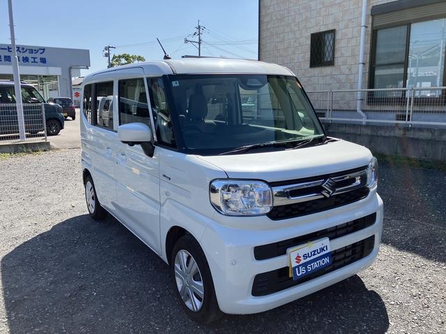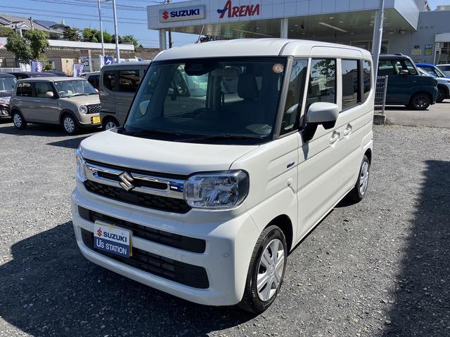 令和7年式 スペーシア ハイブリッドG 入荷。 色は ピュアホワイトパール♪ 衝突被害軽減ブレーキ 全方位ナビ リモコンキー