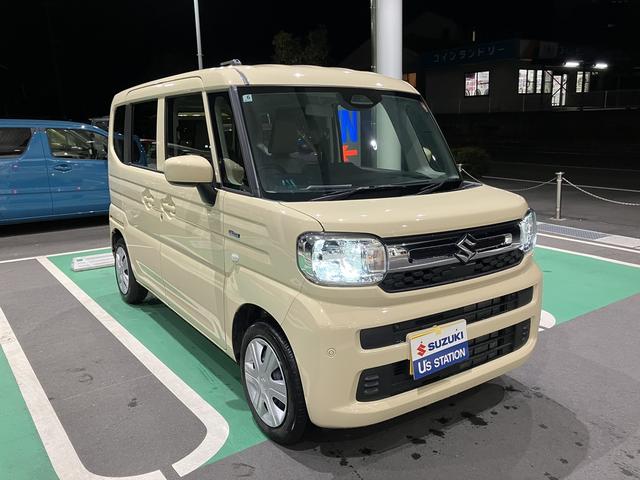 令和7年式 スペーシア ハイブリッドG 入荷。 色は シフォンアイボリー♪ 衝突被害軽減ブレーキ リモコンキー CVT LED