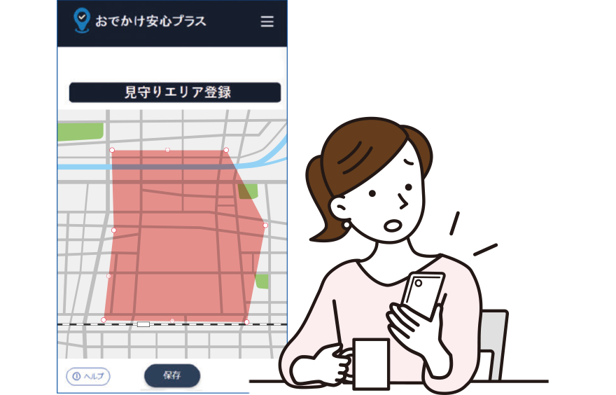 あらかじめ設定したエリアを出た場合、ご登録のメールアドレスへ自動で通知